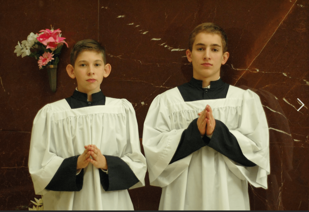 It’s 6 PM on Christmas Eve in Lincoln, Nebraska. Timothy and Patrick are 13 years old and in the sacristy of the newly built Cathedral of the Risen Christ Church getting on their cassocks and albas for Christmas Eve High Mass.