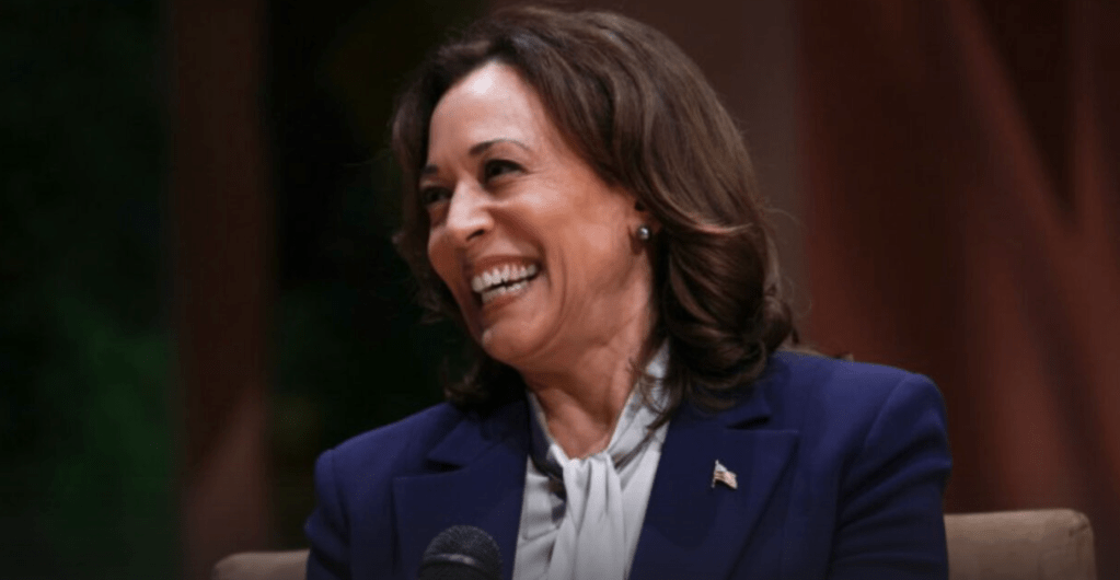 Kamala Harris is on the TV giving her usual speech: