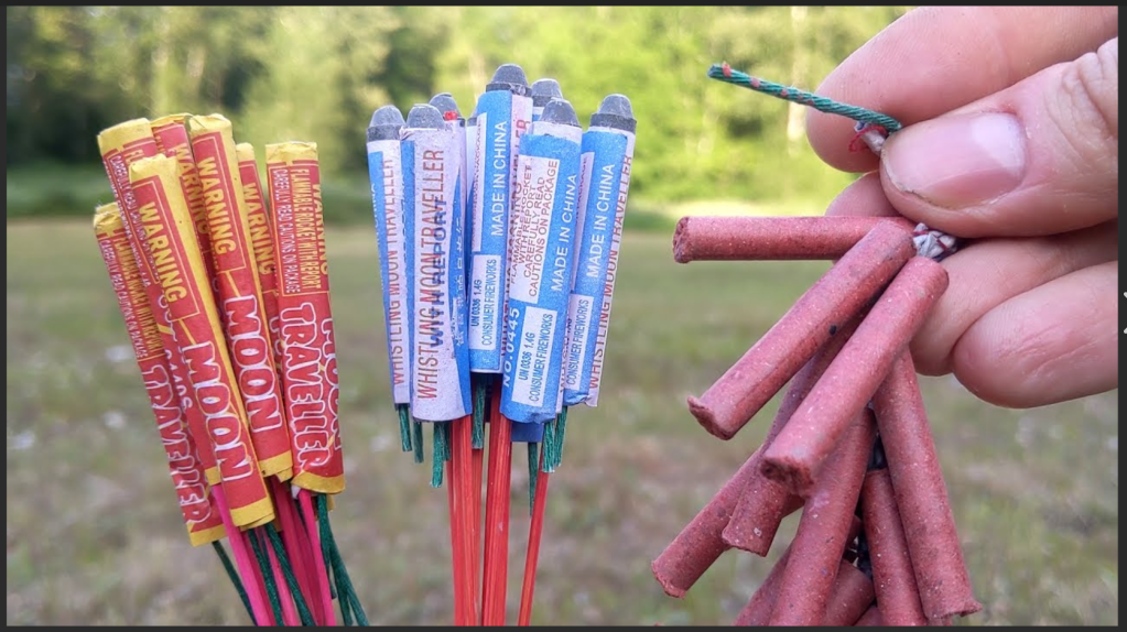 Both sides came armed with firecrackers, bottle rockets, and, for close-in action, Roman candles. M-80s (1/8 stick of dynamite) were not allowed in the battle. They were too dangerous.