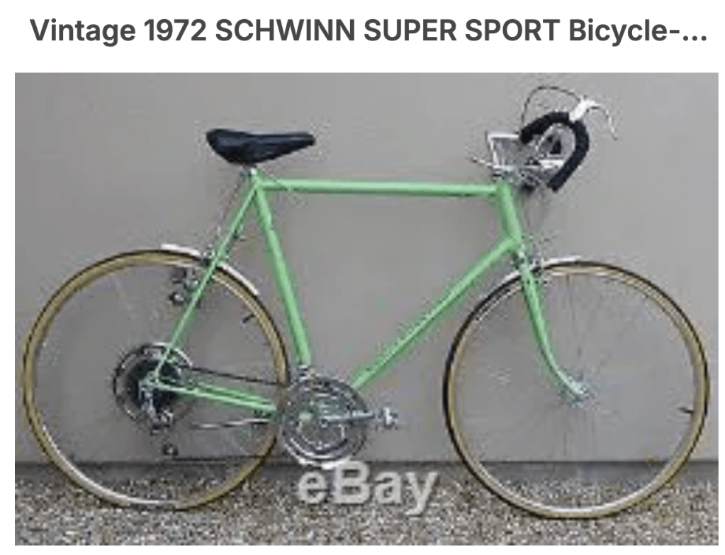 I’d rebuilt the Super Sport a few years ago and repainted it. It was pretty fast for an old bicycle. I think it weighed about 30 pounds.